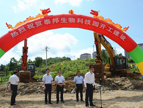 最后,韓匡時副區(qū)長宣布泰邦生物科技園破土動工。在喜慶的鞭炮聲中,“泰邦生物科技園一期項目”正式動工。