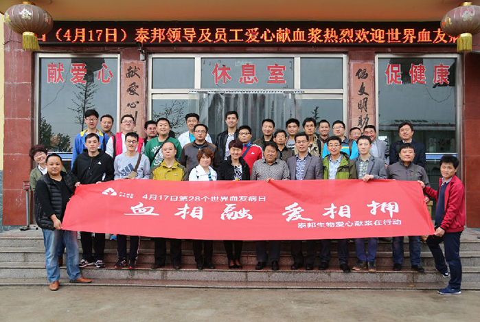 2016年4月16-17日,為迎接第28個(gè)世界血友病日的到來(lái),山東泰邦生物制品有限公司組織員工五十余人到寧陽(yáng)漿站舉行了捐獻(xiàn)血漿公益活動(dòng)。活動(dòng)以血相融 愛相擁為主題,旨在以泰邦人的實(shí)際行動(dòng)號(hào)召更多的愛心人士加入到獻(xiàn)漿隊(duì)伍,提高公眾對(duì)于血友病(凝血功能障礙遺傳性疾?。┑年P(guān)注度,喚起全社會(huì)對(duì)于血友病患者的關(guān)愛和支持。...