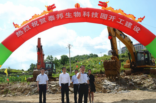 最后,韓匡時副區(qū)長宣布泰邦生物科技園破土動工。在喜慶的鞭炮聲中,“泰邦生物科技園一期項目”正式動工。